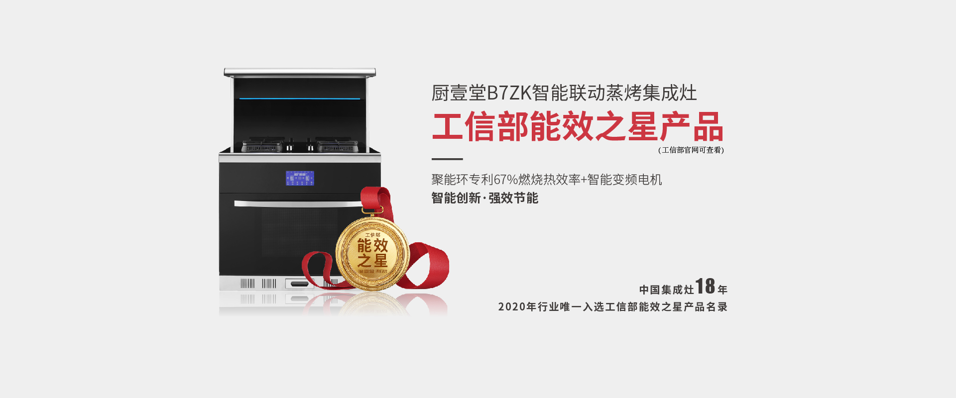 廚壹堂掌握電機核心科技,擁有各項專利100余項,生產出油煙吸凈率高達99.9%的集成灶。是集成灶行業標準主要起草單位、蒸烤一體機標準起草單位、高新技術企業,且是行業內少數獲得“浙江制造”品字標認證的企業。2020年榮獲工信部“能效之星”榮譽,是行業內唯一一家獲此殊榮的企業。